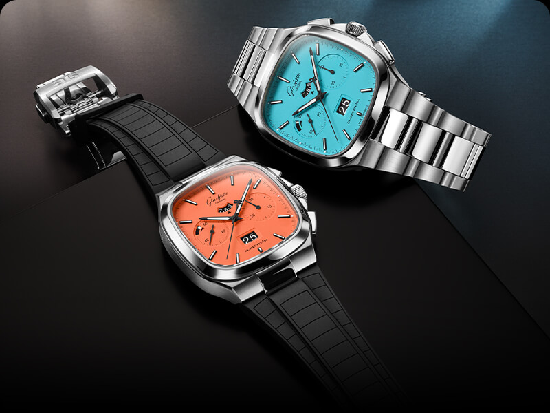 In den 1970er Jahren produzierte Glashütte Original unter seinem Vorgänger VEB Glashütter Uhrenbetriebe (GUB) eine Reihe von Zeitmessern, die die Designtrends der Zeit widerspiegelten. Diese Uhren zeichneten sich durch eckige Gehäuse, markante Zifferblätter und einen Sinn für Kühnheit aus, der sie auszeichnete. Die Glashütte Seventies Chronograph Panorama Date-Kollektion ist eine Hommage an diese Vintage-Modelle und integriert gleichzeitig moderne Fortschritte in der Uhrmachertechnik.